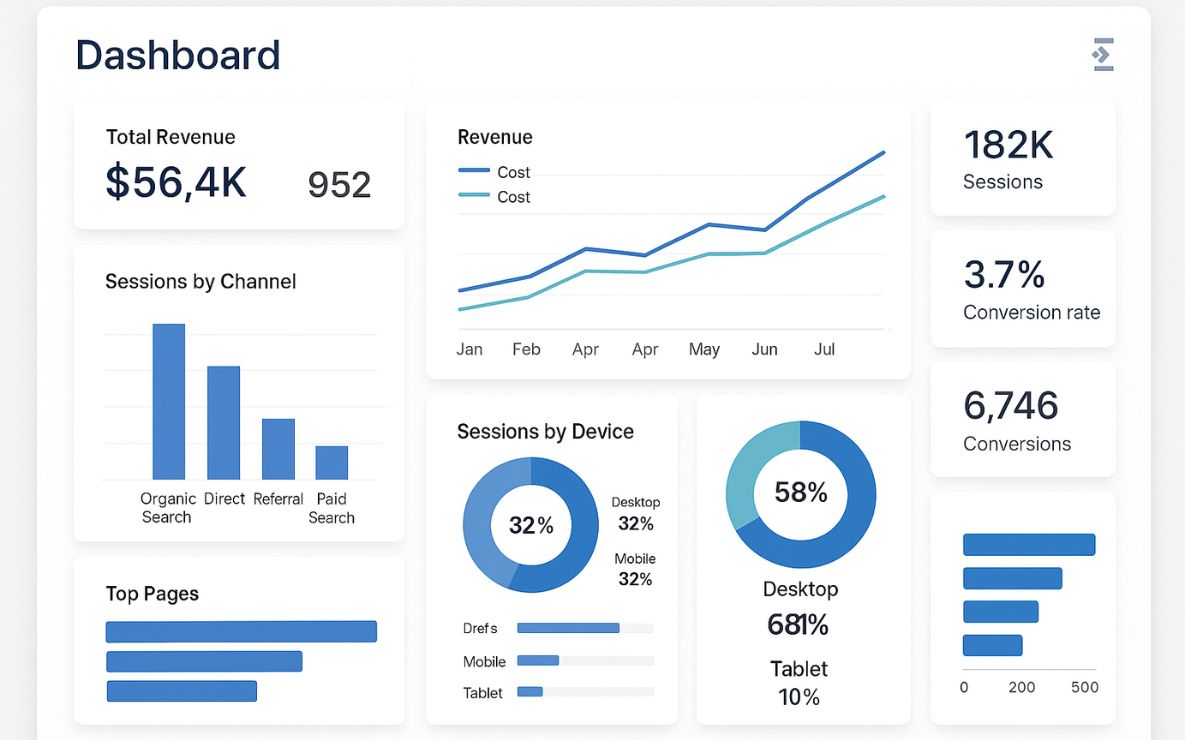 Un dashboard o panel es una herramienta de visualización de datos. En tiempo real, brinda información sobre las prioridades del negocio. Por eso, para su composición, es necesario plantearse la cuestión de qué busca tu cliente con ello. Nosotros lo resumimos en: